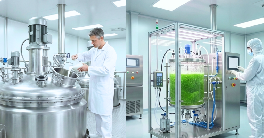 Manufacturing a classic cosmetic emulsion has nothing to do with producing a protein, a peptide or an active ingredient obtained by fermentation. The latter involve very different unit operations and technical requirements: cell or microbial cultures, strict control of critical parameters, clarification and purification steps, handling of sensitive materials, risks of cross-contamination and specific cleaning and validation needs.